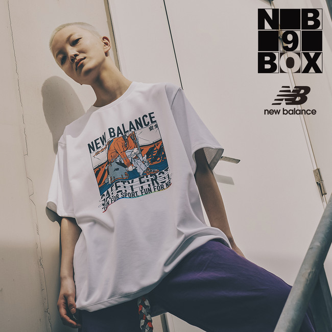 「9 BOX」は“Fun for Sport, Fun for NB”をコンセプトに、3人のアーティストが3スタイルずつ、合計9つのデザインで発表するグラフィックTシャツコレクション。高い吸水速乾性を誇る機能素材でありながら、柔らかく自然な風合いのボディとコットンライクな肌触り、トレンド感あるビッグシルエットもあいまって、ファッションにもスポーツにも“Fun” をもたらします。