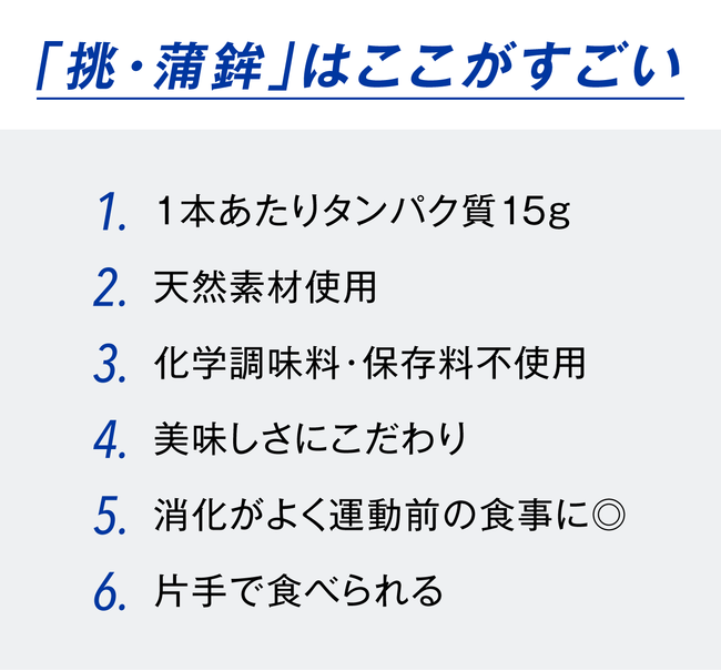 慶応元年創業の老舗「鈴廣かまぼこ」と日本代表歴代2位の出場数を誇る長友佑都がタッグを組み、高タンパク・化学調味料&保存料不使用・天然素材を追求した『フィッシュプロテインバー 挑・蒲鉾』を開発しました。