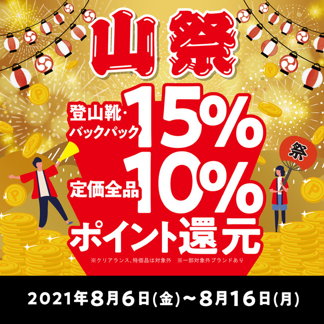 登山・クライミング・アウトドア用品総合専門店、クライミングジムを運営する株式会社好日山荘(本社:兵庫県神戸市、代表取締役社長 池田 真吾)は、8月6日(金)より好日山荘全店(フランチャイズ店含む)でメンバーズポイントが今シーズン最大級お得に還元となる「山祭」を開催します。