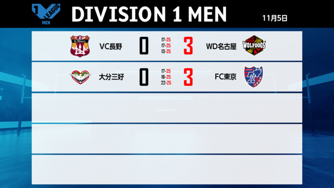 バレーボール国内最高峰リーグ V.LEAGUE【11月5日の試合結果】