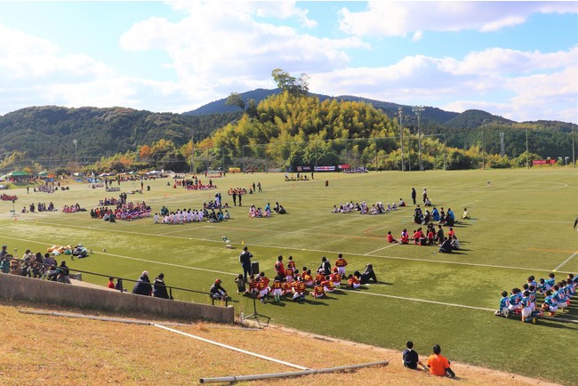 【「第17回むなかたキッズセブンラグビー大会」の開会式】