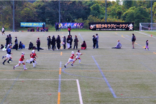 【「第17回むなかたキッズセブンラグビー大会」の試合の様子】