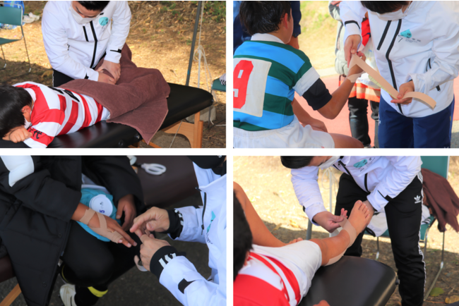 ラグビーは、体がぶつかり合うコンタクトスポーツなので、ケガが多いスポーツです。堺整骨院グループの救護ブースでも、ケガをした選手が多く訪れていました。