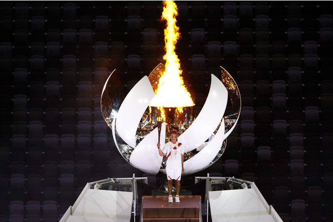 ▲東京2020オリンピック開会式では、大坂なおみ選手が聖火リレーの最終走者を務めた 写真:フォートキシモト