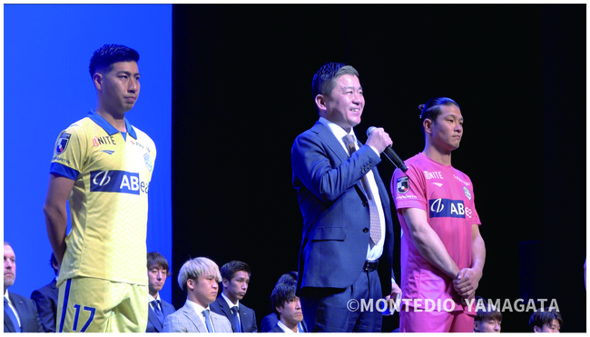 「モンテディオ山形2022キックオフイベント」では、選手たちによる新ユニフォーム発表後、約2,000人の関係者やサポーターの皆様の前で玉井が挨拶をさせていただきました。