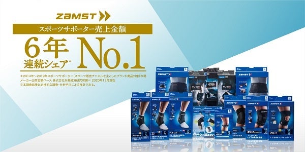 スポーツ事業として展開する「ZAMST(ザムスト)」は1993年に設立したスポーツ向けサポート・ケア製品ブランドで、スポーツサポーター市場売上金額6年連続No.1※2に認めらています。