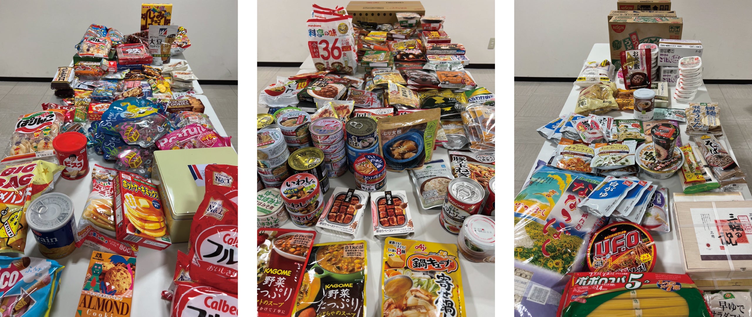 その具体的なアクションのひとつとして今回、京都ハンナリーズのホームゲームにおける食品寄附の受付を実施し、1月29日、30日の二日間で、白米やうどん、パスタなど炭水化物から、醤油や砂糖などの調味料、レトルト食品やお菓子、缶詰、飲料など合計340点、段ボール箱約10箱の食品を寄附いただきました。