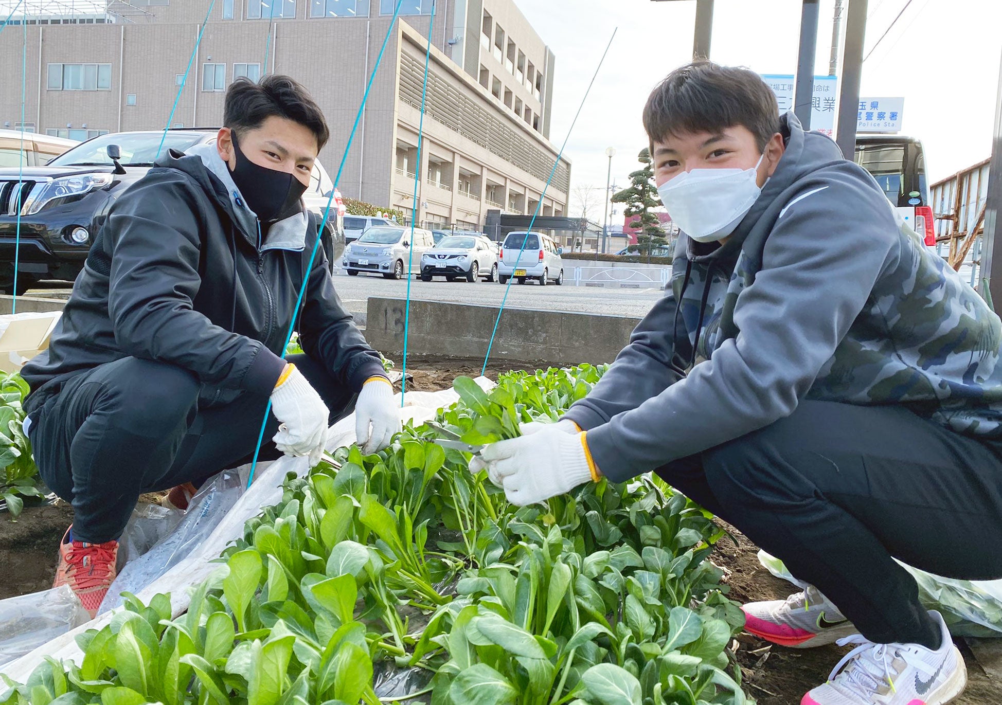 埼玉武蔵ヒートベアーズは株式会社ユニマット リタイアメント・コミュニティ(東京都港区北青山、代表取締役社長 中川清彦、以下:ユニマットRC)とのオフィシャルサプライヤー契約に基づき、ユニマットRCが企画・運営する農業を、上尾の民間市民農園で一緒に行っています。選手らは、農作物を栽培・収穫してユニマットRCが運営する高齢者介護施設「上尾ケアセンターそよ風」に届けるという多世代・地域交流活動に取り組んでいます。このたび、選手が一生懸命育てた野菜をファンのみなさまにも届けたいという思いから、おふろ cafe ハレニワの湯での販売会を行います。
