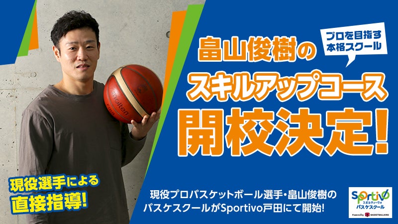 本スクールでは、現役プロバスケットボール選手の畠山俊樹氏が直接指導する「スキルアップコース」を開設いたします。