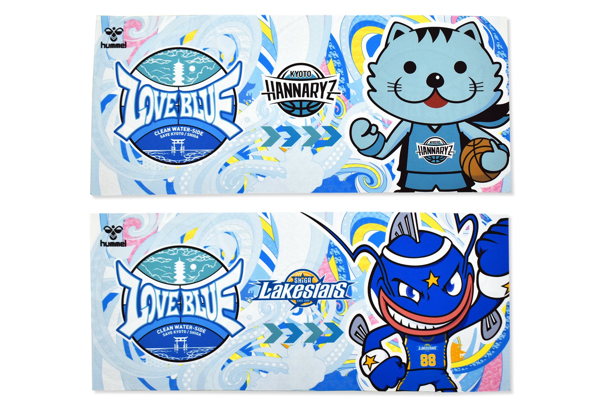 今回、プロジェクト第2弾グッズとして、タオルとキーホルダーを作成。水色をベースに、京滋エリアの名所をデザインし、水玉模様や波型などの和柄を配置したキービジュアルに、両クラブのマスコットが入ったオリジナルグッズ。2月8日より2月13日まで京都ハンナリーズ、滋賀レイクスターズのオフィシャル通販サイトで受注予約を受け付けます。お届けは、3月中旬を予定。3月19-20日のYMITアリーナでの滋賀レイクスターズvs京都ハンナリーズ戦の会場での受け取りも可能です。