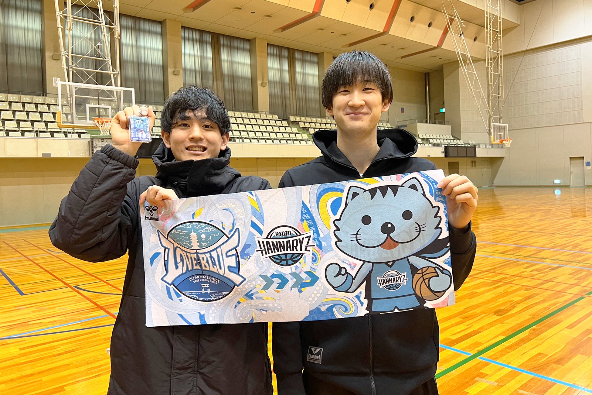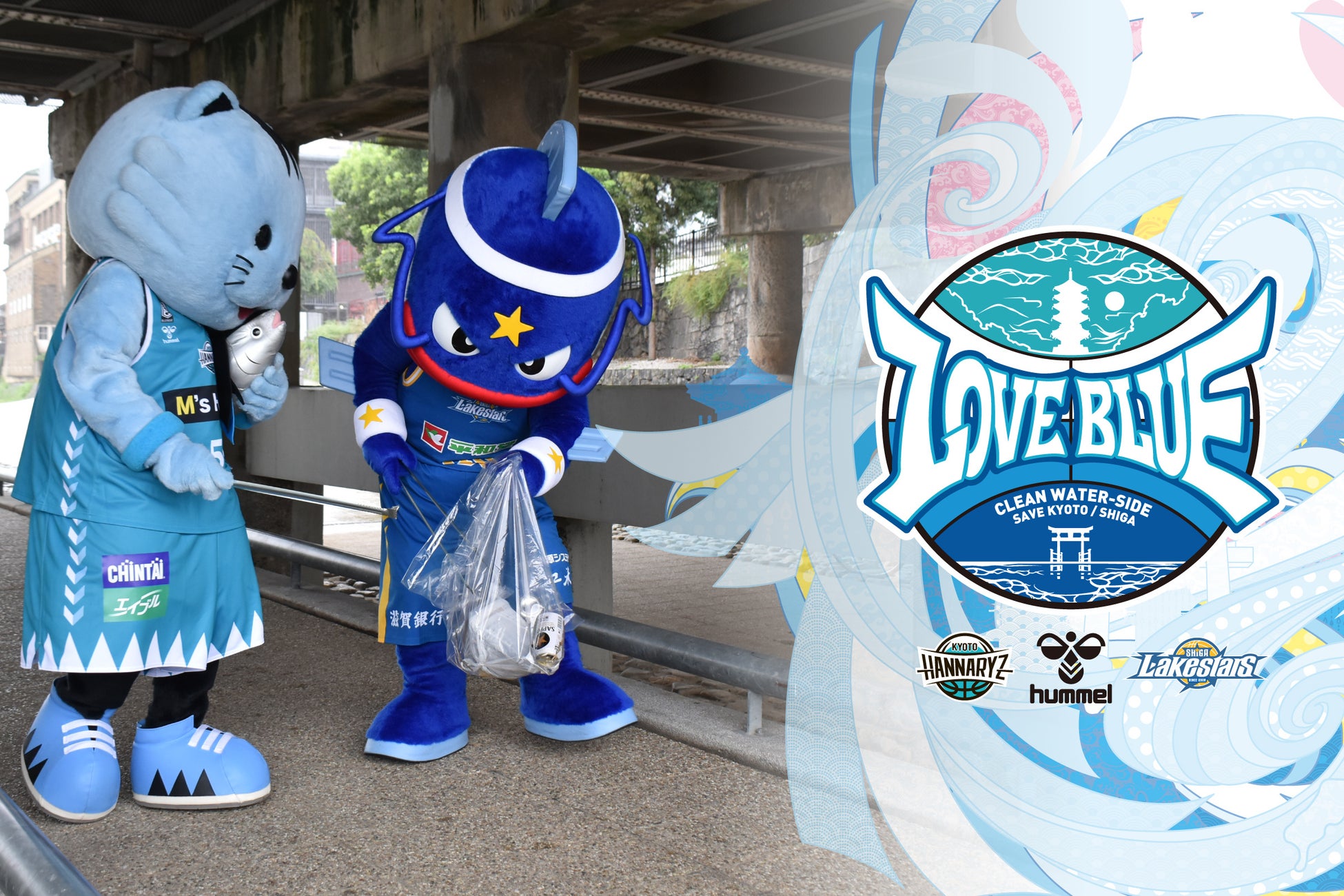 「LOVE BLUE PROJECT」は、京都ハンナリーズと滋賀レイクスターズ、ヒュンメルの3社による環境保全プロジェクト。コートではライバル同士のチームが価値観や文化の違いを認め合い、地域のために行動を共にする取り組みです。