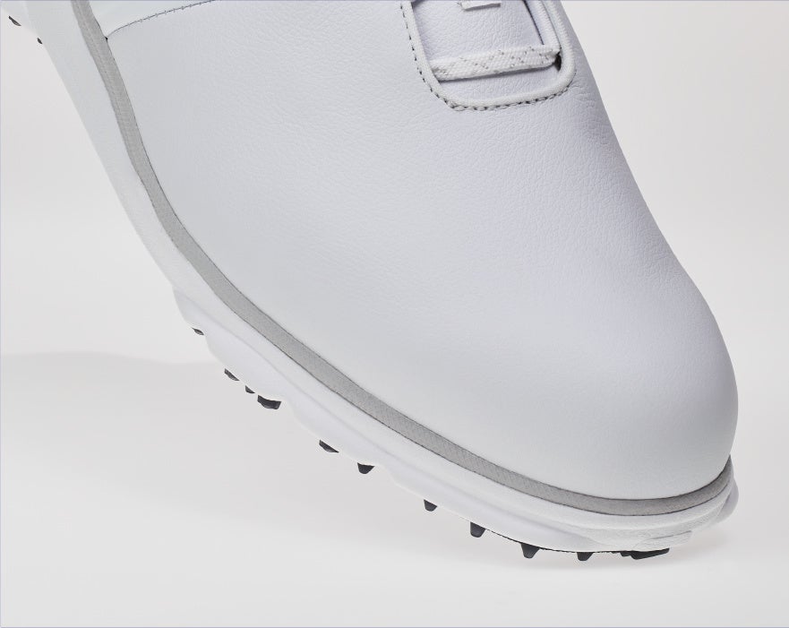 クッション性、反発性に優れた全く新しいSTRATOFORMをミッドソールに採用。従来のEVAミッドソールより約10%地面反力効率を向上させ、より高いクッショニングとエナジーリターンを得られるようなりました。様々な環境下での長時間のプレーにおいても、従来のゴルフシューズと比類ない快適性を実現しました。