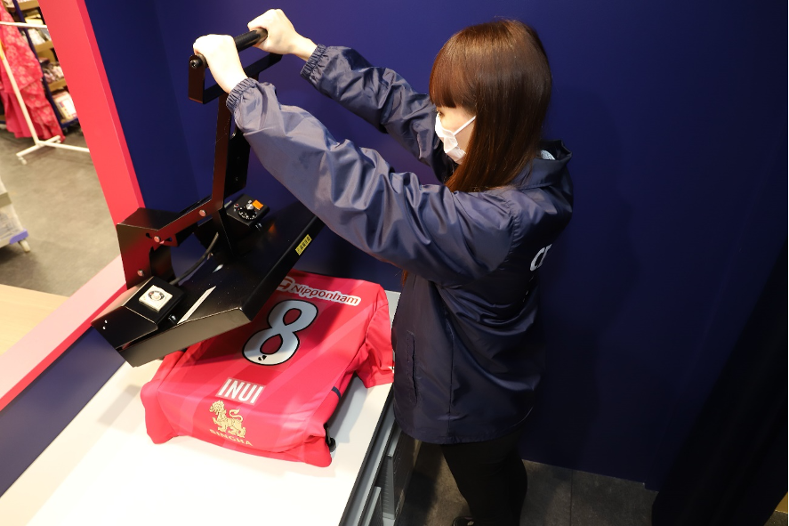 キーホルダーカスタム機の導入により、お好きな選手を選択して、ユニフォーム型のキーホルダーがカスタム可能。