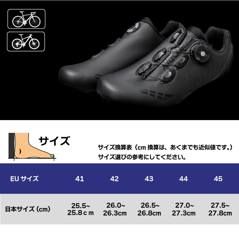 3タイプのビンディング用クリート対応の自転車サイクルシューズです。