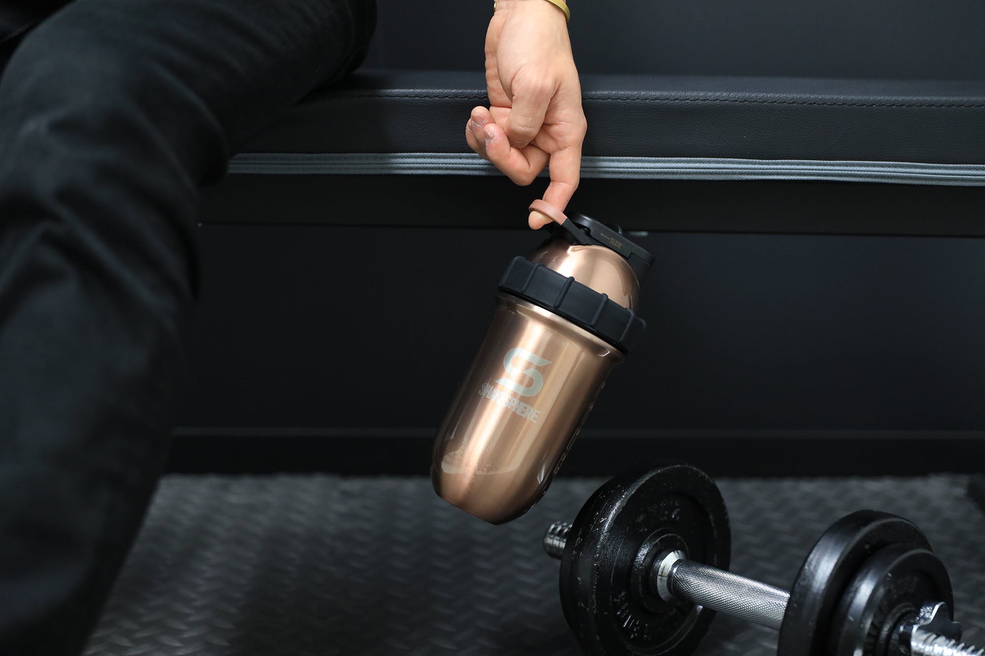 スチールの二重構造になっており、その隙間に銅を流し込むことにより、長時間の保温保冷効果が実現。8時間の保温効果、12時間の保冷効果が保てます。ワークアウト前に作っておいたプロテインなどの飲み物をワークアウト後でも、冷たい状態で飲むことが出来ます。また、結露しにくい構造になっている為、水滴が垂れず、ジムなどでもシェイカーの置き場所に困りません。