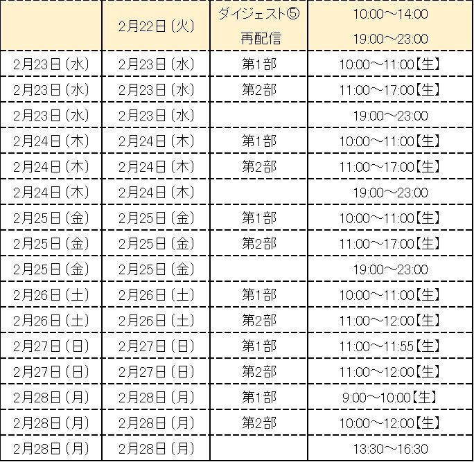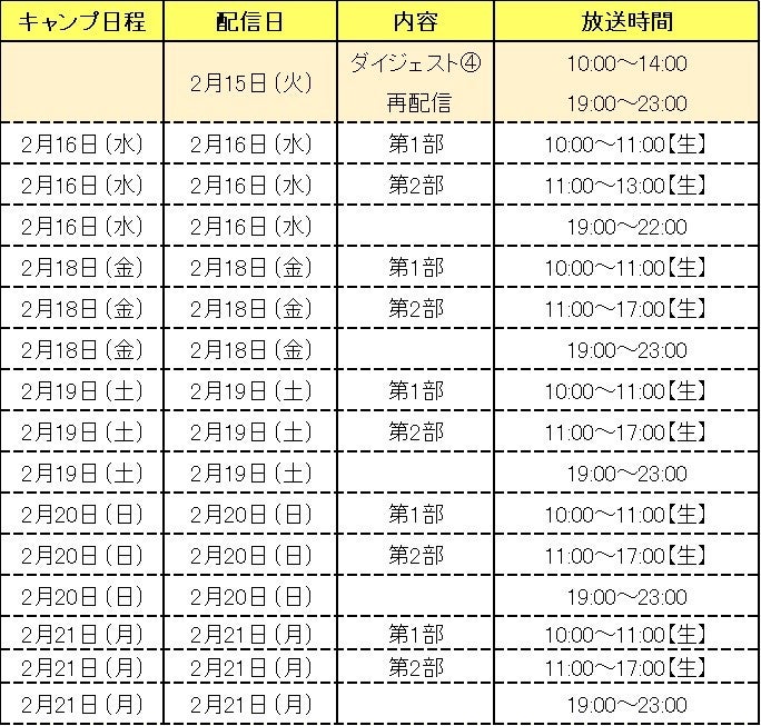 【「ファイターズキャンプLIVE 2022 ~GAORAも暴れまっせ!~」配信スケジュール】