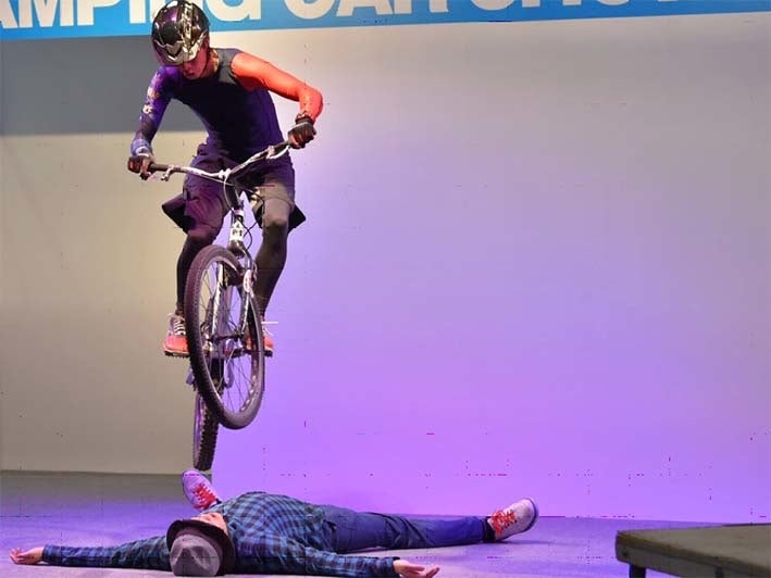 米村でんじろうサイエンスプロダクションによるサイエンスショーの他、MTBパフォーマーやサイクルサッカーチームによる自転車を使ったスゴ技ショーも披露いたします。