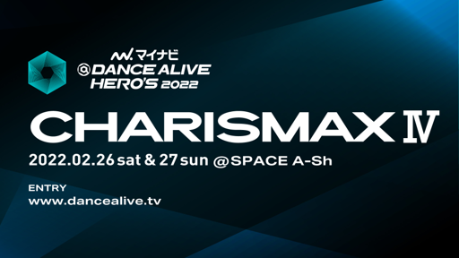 株式会社アノマリー(本社:東京都渋谷区、代表取締役CEO:神田勘太朗)は 、国内発信であり世界最大規模のソロダンスバトル『マイナビDANCE ALIVE HERO’S 2022 (ダンス アライブ ヒーローズ ニセンニジュウニ)』の予選大会を開始しております。今回は予選大会の第4弾として、『マイナビDANCE ALIVE HERO’S 2022 CHARISMAX Ⅳ 』を、SPACE A-Shにて、2022年2月26日(土)と2022年2月27日(日)に開催いたします。