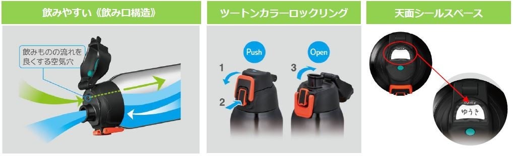 ●飲み口をくわえても一気に飲める ●ワンタッチ・オープン ●お名前シール付き