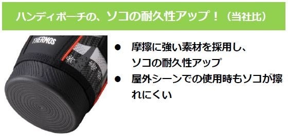 『サーモス 真空断熱スポーツボトル(FHTシリーズ)』は、空気穴付きの飲み口構造で、飲み口をくわえても一気に飲める保冷専用のスポーツボトル。ステンレス製魔法びん構造の高い保冷力でドリンクの冷たさを長時間キープします。ハンディポーチは、ホールド性の高いハンドルと、ねじれにくく肩にやさしい幅広ショルダーストラップ付き。軽量・コンパクト設計、ロックされているのが分かりやすいツートンカラーのロックリングなど、使いやすさにこだわった製品で、多くのお子さまにご愛用いただいております。