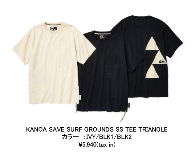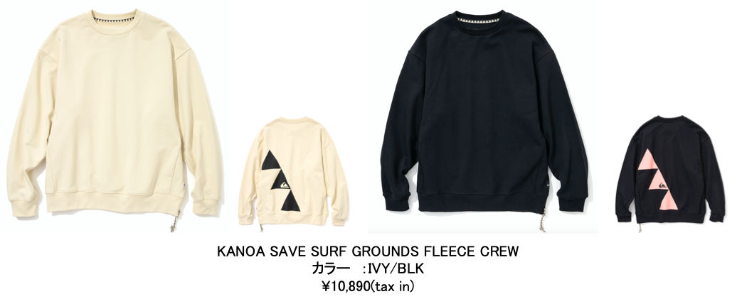 すべてのアイテムにはサーファーにはお馴染みのリーシュロック(サーフボードとリーシュコードを繋ぐ紐のパーツ)が付けられており、TOPサーファーであるカノアらしい遊び心が見て取れ、同時にユニークなアイキャッチとして機能しています。また、ブランドロゴの上にカノアのサインをあしらったロゴデザインが、ネームなどに使用されていて、特別感を演出しています。シルエットはオーバーサイズで、リラックス感のある今っぽいシルエットに仕上がっています。