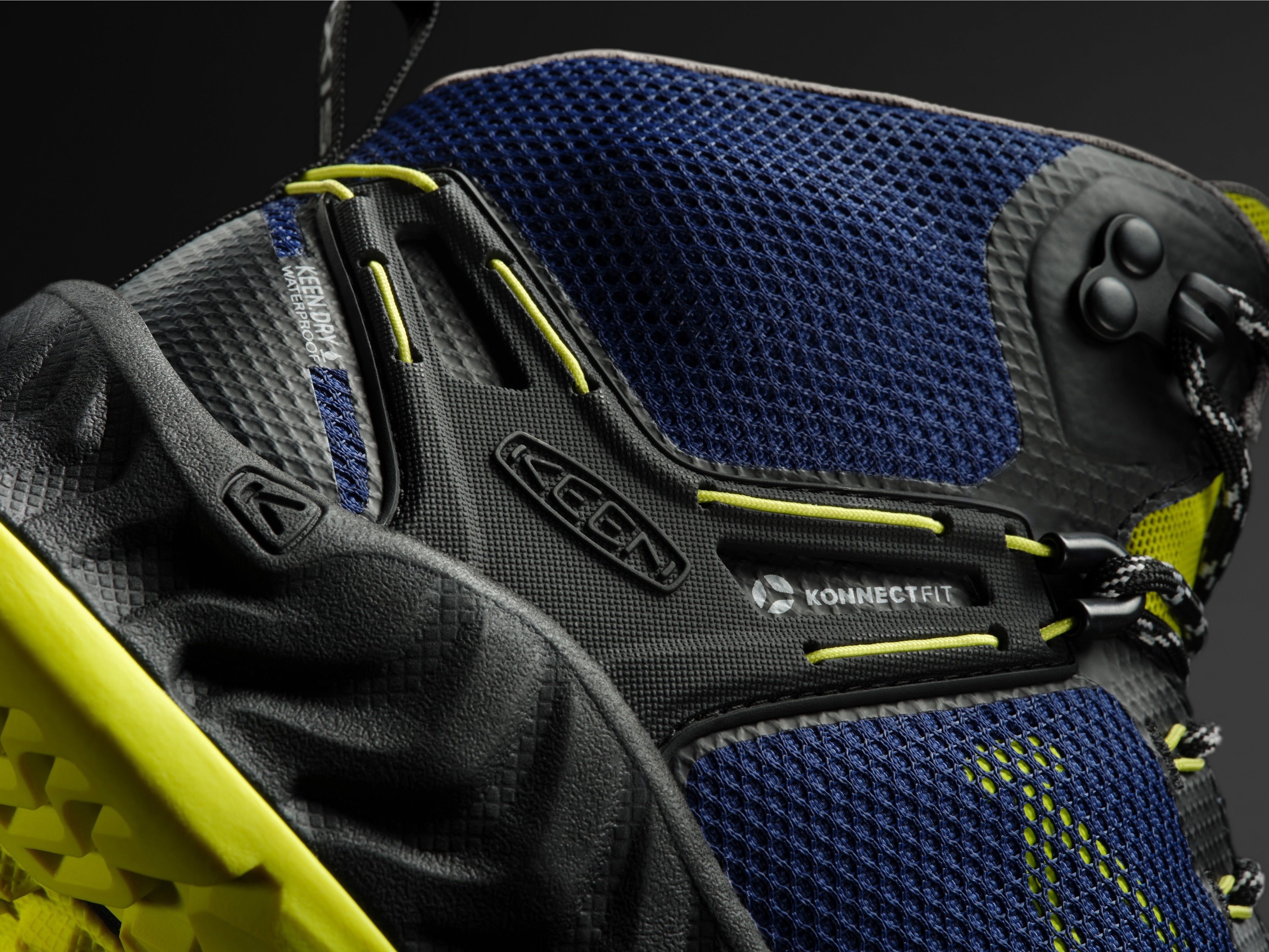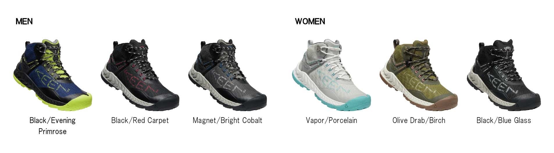 独自の防水透湿素材<KEEN.DRY(キーン・ドライ)>がシューズ内をぐるりとカバーしているウォータープルーフのミッドカットモデル『NXIS EVO MID WP(ネクシス エヴォ ミッド ウォータープルーフ)』と、同じくウォー