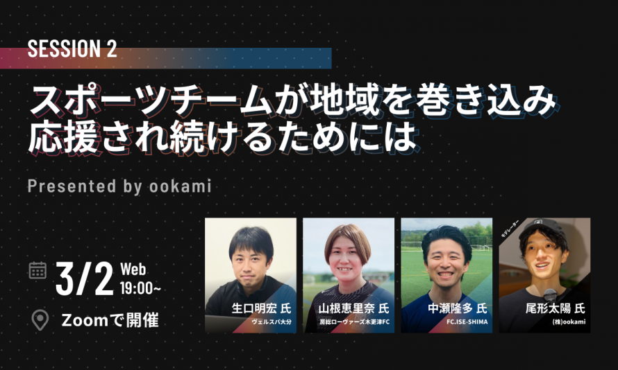 このセッションでは、テクノロジーを活用して広報やファンクラブ施策・新たな資金調達方法にトライしている皆さんをお招きして、その事例や背景をご紹介しながら、これからの地元スポーツチームが地域を巻き込み応援され続けるために大切なことについて、地域を巻き込みファンとの関係性を深めているサッカークラブのみなさんとディスカッションしていきます。