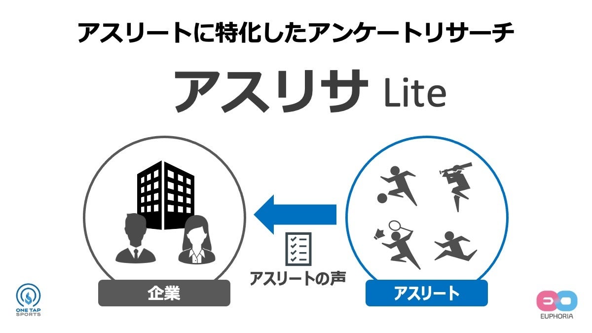 スポーツテック企業の株式会社ユーフォリア(本社:東京都千代田区 共同代表:橋口 寛/宮田 誠、以下 ユーフォリア)は、企業の商品企画部門やマーケティング・販売促進部門向けの、高校から社会人チームに所属するアスリートへのアンケート調査が可能なパッケージ「アスリサ Lite」をリリースしたことをお知らせいたします。