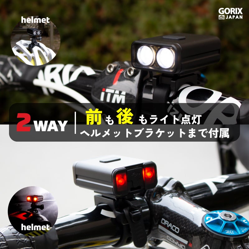 ヘルメットに装着してヘッドライトとして、そして後方に存在を示すリアライトとして使用できます。