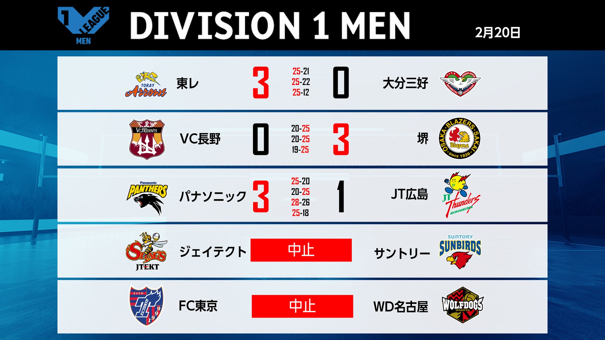 バレーボール国内最高峰リーグ V.LEAGUE【2月20日の試合結果】