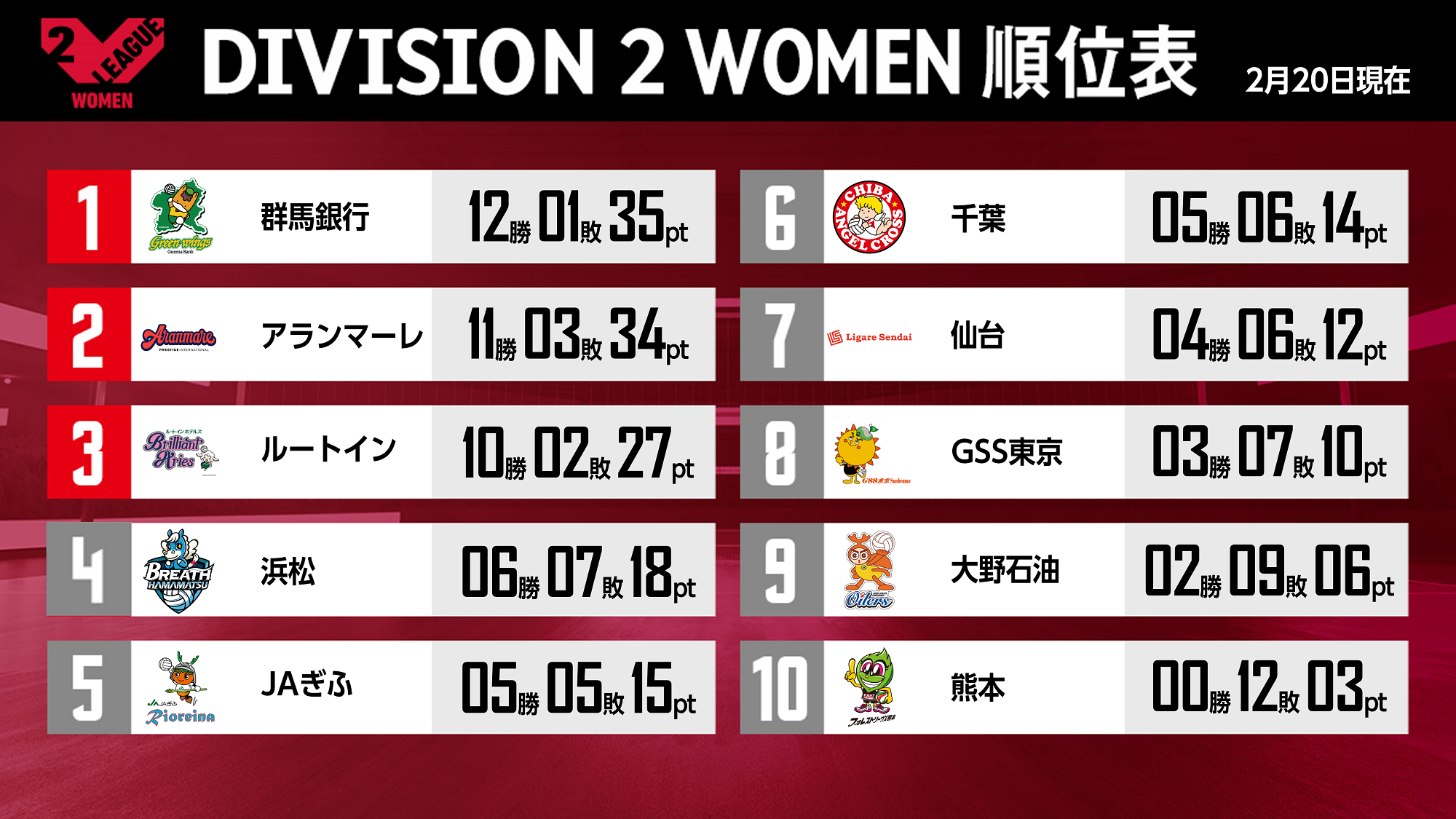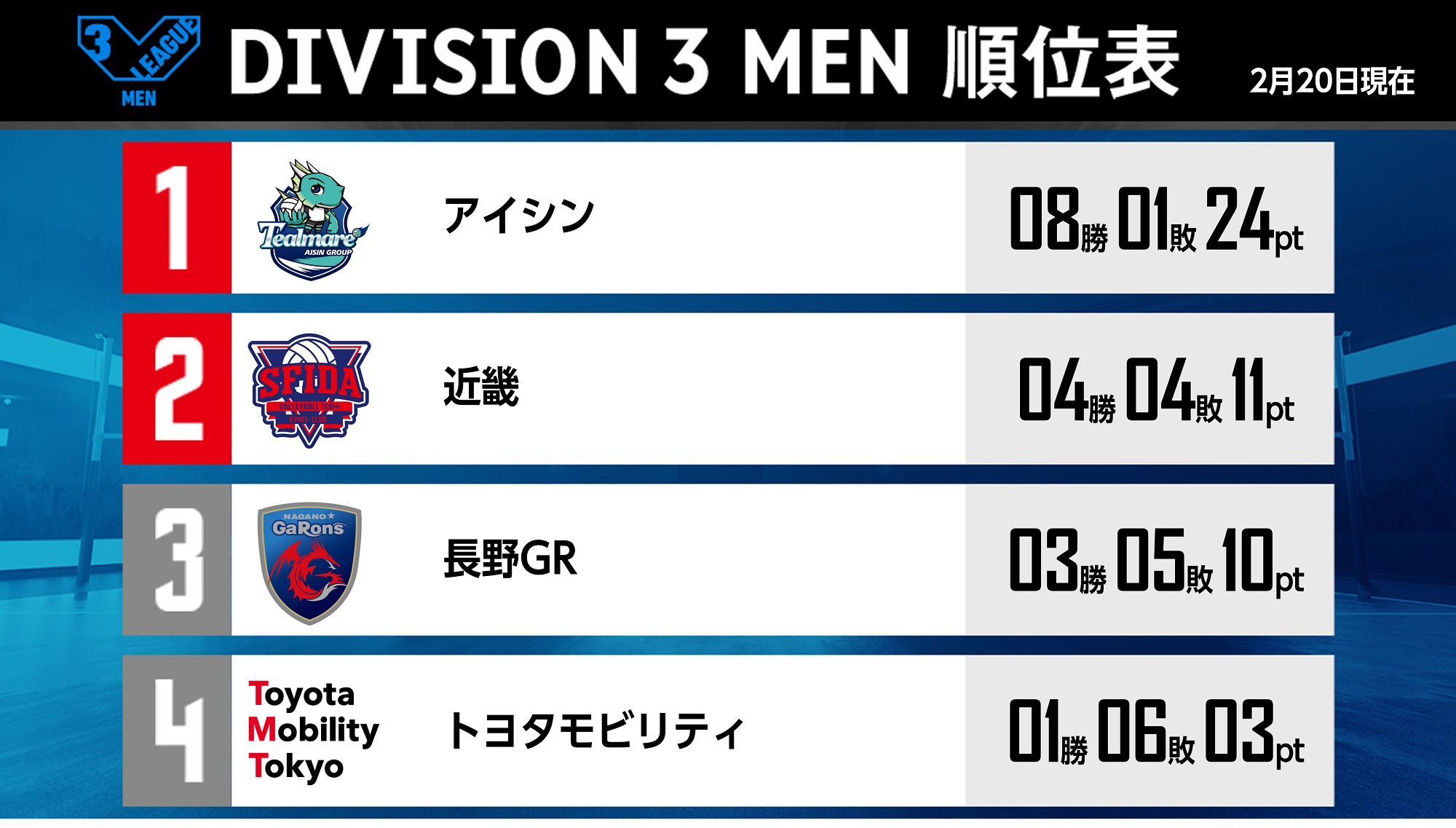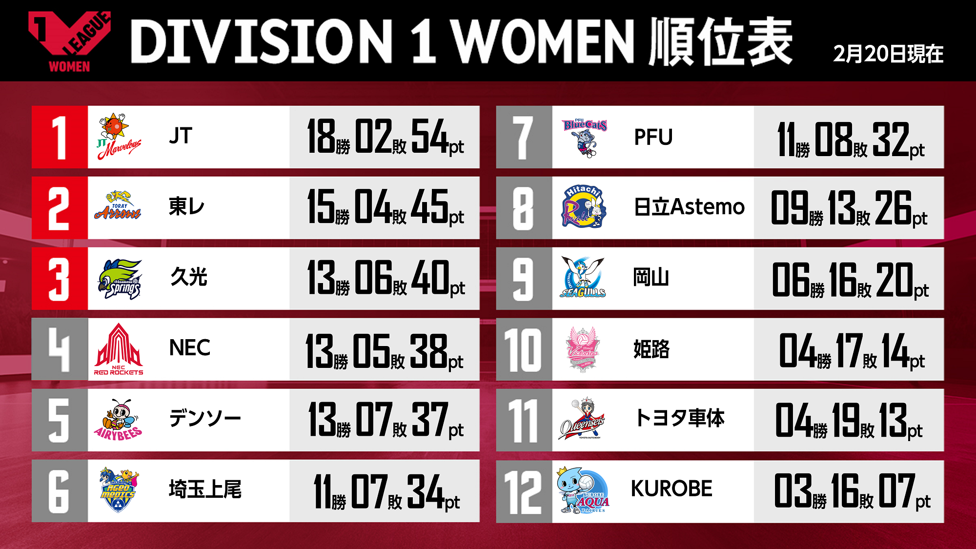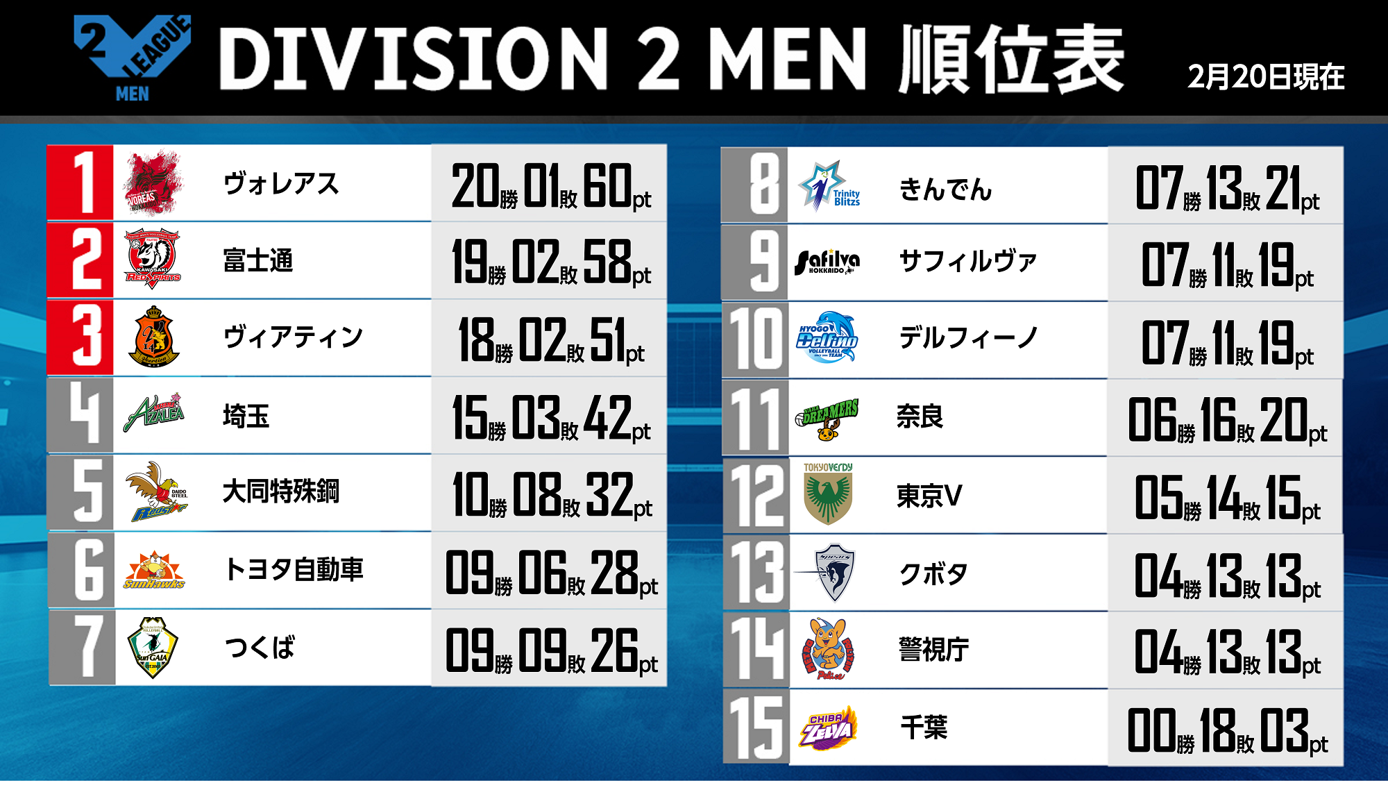 バレーボール国内最高峰リーグ V.LEAGUE【2月20日の試合結果】