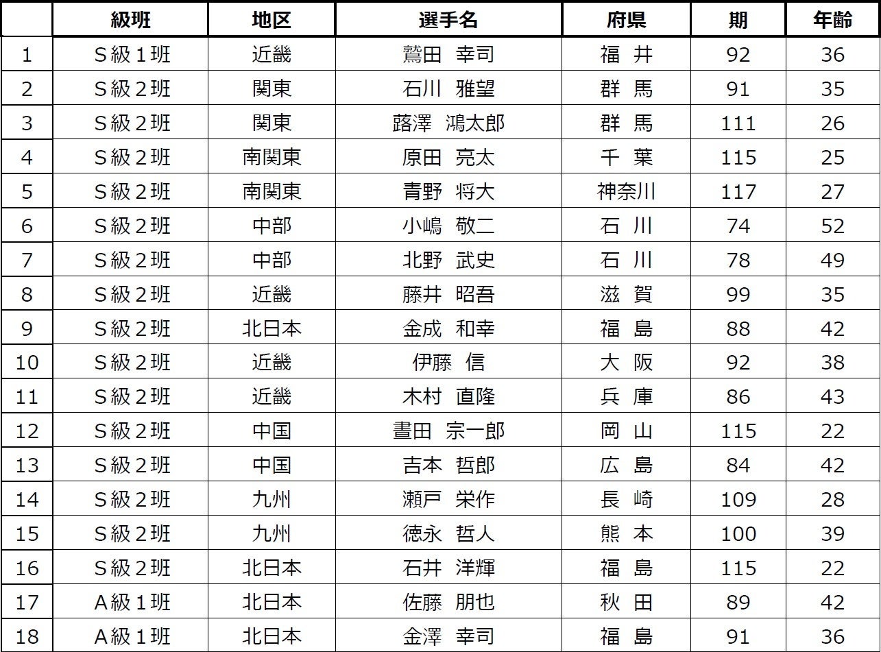 ※直前のレースなどにより、欠場及び出場選手が変更する場合がございます。