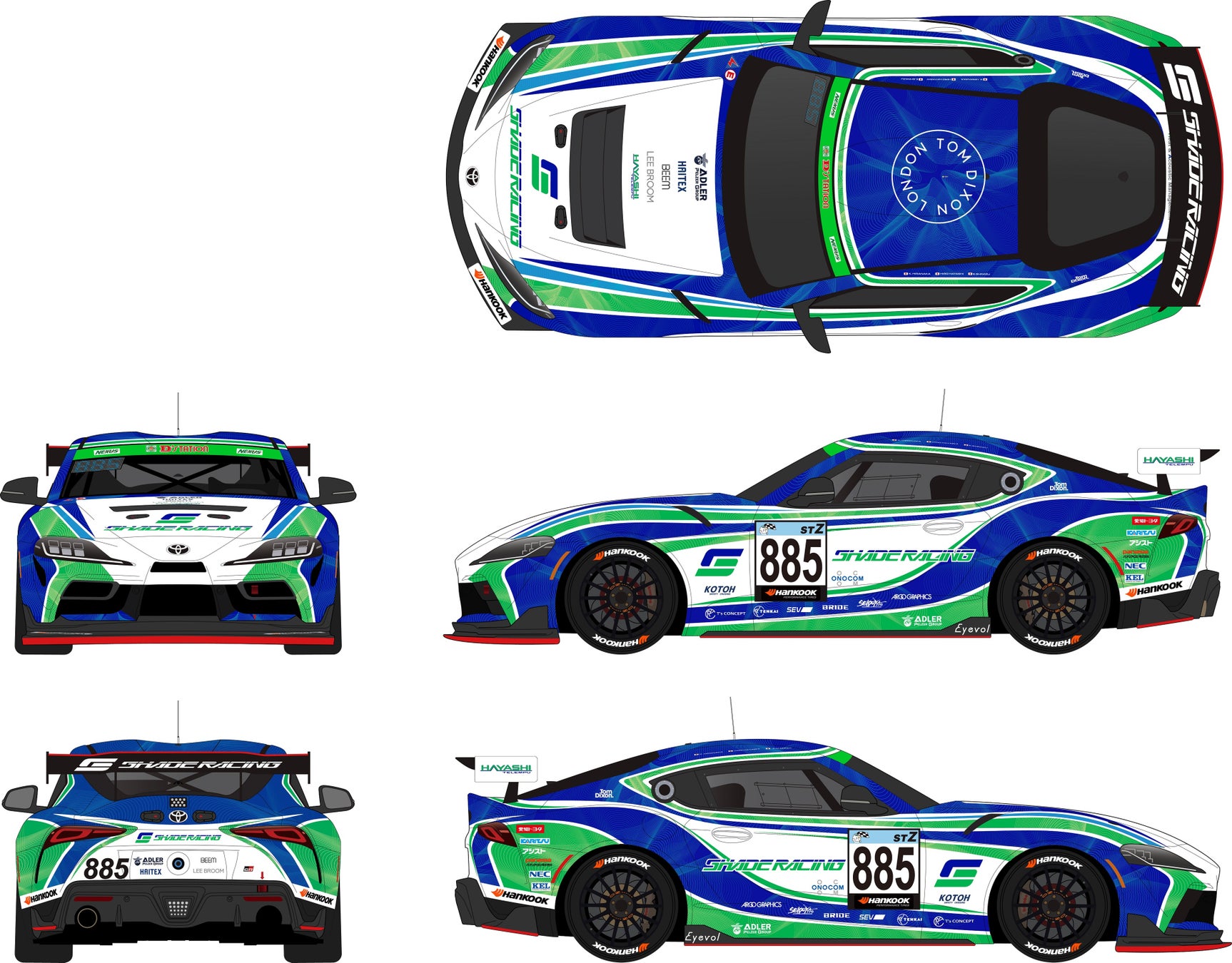 株式会社シェイドレーシング(チーム名:SHADE RACING)は、スーパー耐久シリーズ2022 Powered by Hankook ST-Zクラスに参戦する885号車 TOYOTA GR SUPRA GT4のマシンカラーリングを決定しました。