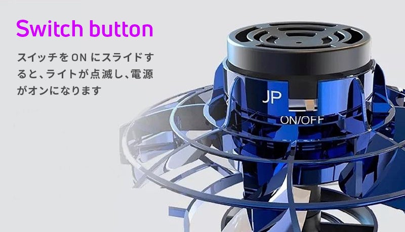 GeeFrisbee(ジー フリスビー)の本体のスイッチをONにスライドすると、ライトが点滅し電源がオンになります。