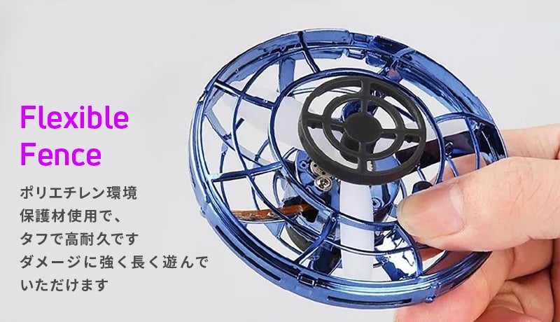 安全停止クローズドローラー設計で安心です。回転したフリスビーを手で掴むと、回転を止めます。