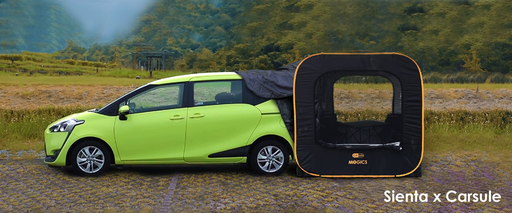 今回、machi-yaで先行予約販売中のCARSULE PLUSはバックドア開放時の高さが2.4m以下の車種に取り付けることができるため、これまでCARSULEの購入を諦めていた方々にも「車に連結できるテント」をお楽しみいただける環境が遂に整いました。