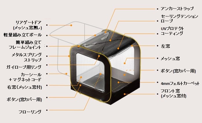 3面の窓はジッパー式で簡単に閉めることができます。窓を閉めることで、着替えや寛ぎたい時などにプライバシーを確保でき、安心して過ごせます。