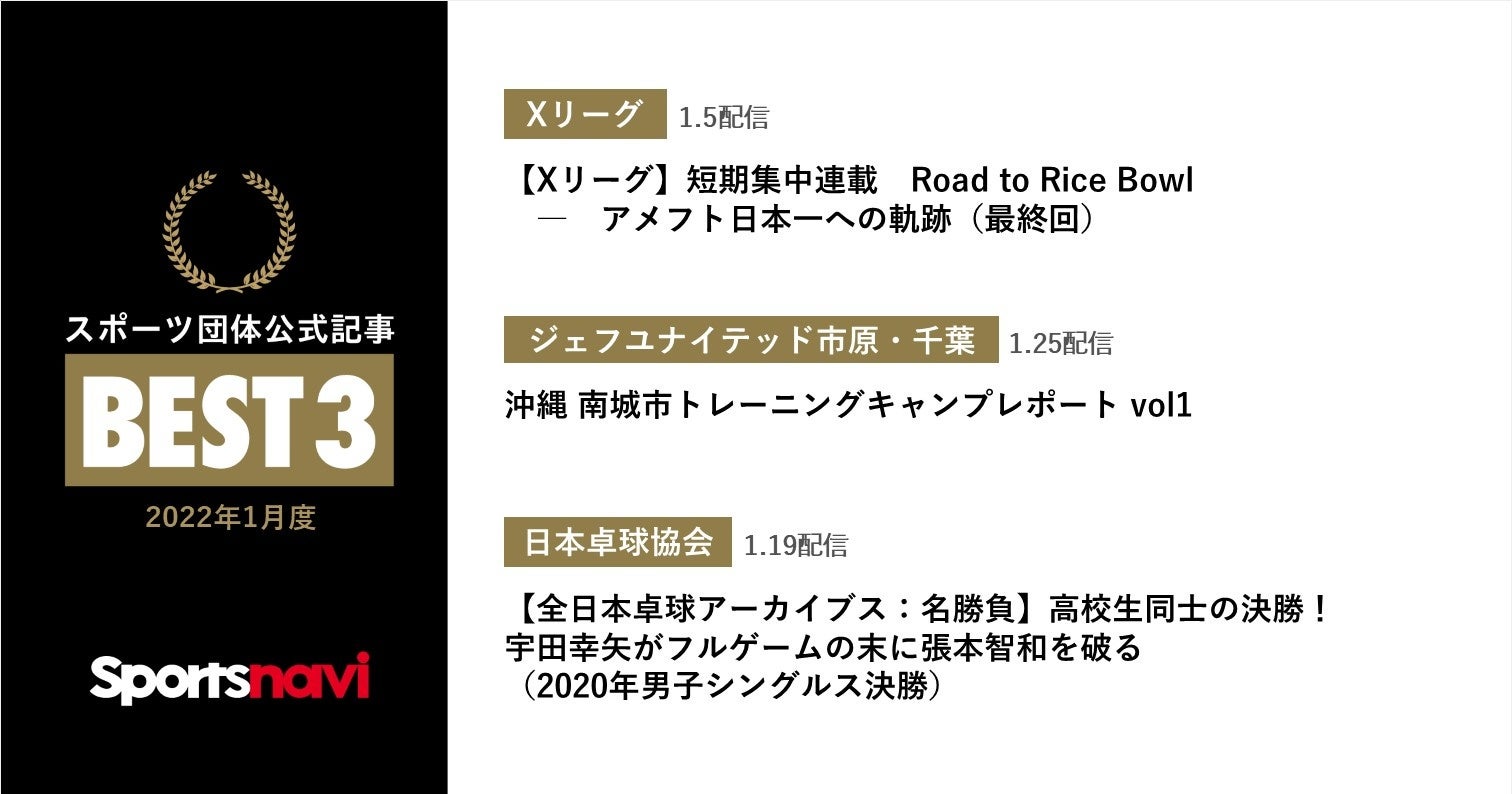 スポーツ団体公式記事とは、各チーム・各競技団体・各球団から直接スポーツナビに入稿された公式情報のニュース記事です。