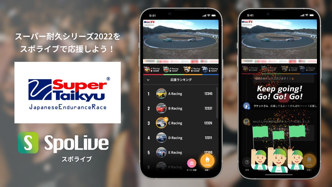 この度SpoLiveは、レース競技に初めて対応するとともに、スーパー耐久にてご導入いただくことが決定いたしました。スーパー耐久ファンやご関係者の皆さまに、よりインタラクティブな観戦体験をご提供できることを大変楽しみにしております。