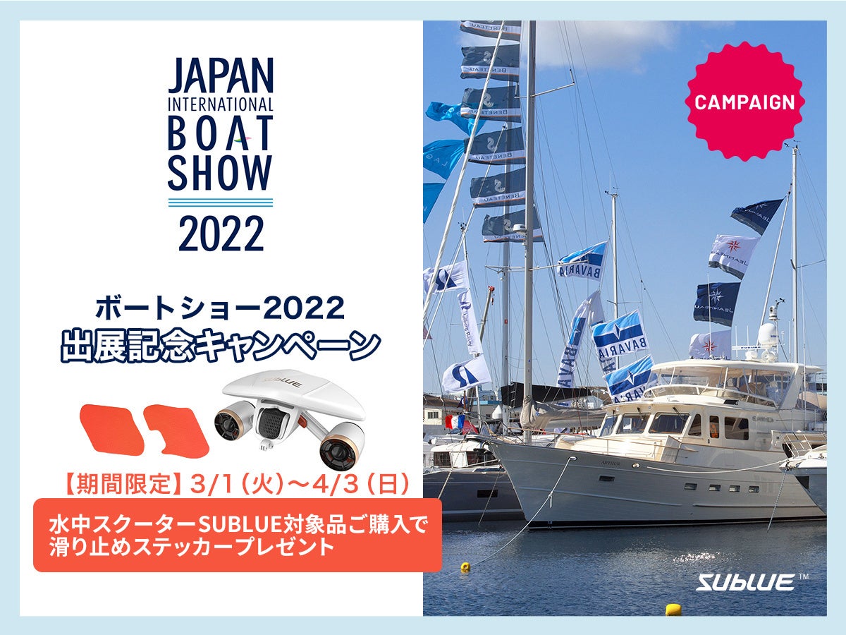 株式会社セキド(本社:東京都港区、代表取締役:⼤下貴之)では、2022年3月31日(木)~4月3日(日)に開催する ジャパンインターナショナルボートショー2022 への水中スクーターブランド「SUBLUE(サブルー)」の出展を記念して、対象の水中スクーター購入で人気アクセサリー「滑り止めステッカー(1,188円相当)」をプレゼントするキャンペーンを開始いたしました。