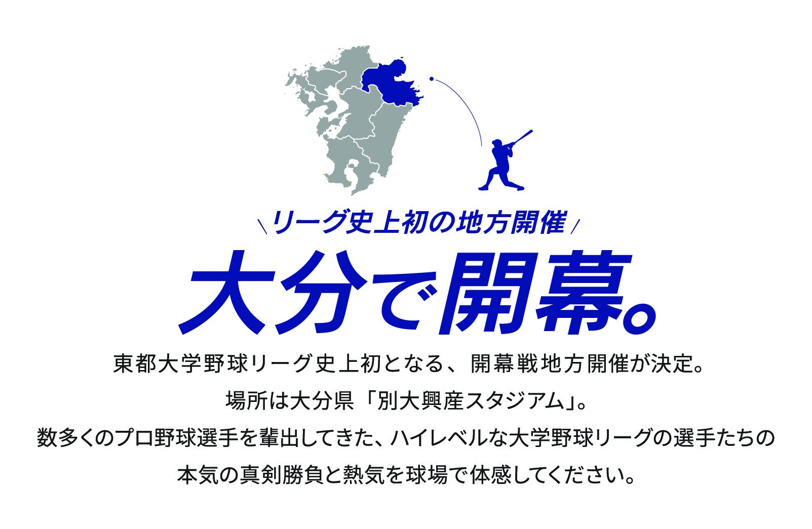 これまで東都大学野球の開催は、東京都近郊で行われていました。そんな中、今年創設91年目を迎え更なる発展の第一歩として公式開幕戦を地方で実施することになり、その記念すべき第一回目が大分県に決まりました。