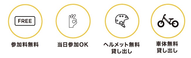 [対象年齢] 0歳 〜 5歳※0歳はつかまり立ちができるお子さま対象です。 [参加料] 無料(当日受付 / 定員になり次第受付終了) [試乗会以外のコンテンツ] (一部会場のみ実施、いずれも参加費無料、参加方法は、開催場所のイベント情報にて)