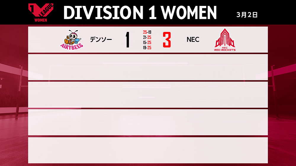 バレーボール国内最高峰リーグ V.LEAGUE【3月2日の試合結果】
