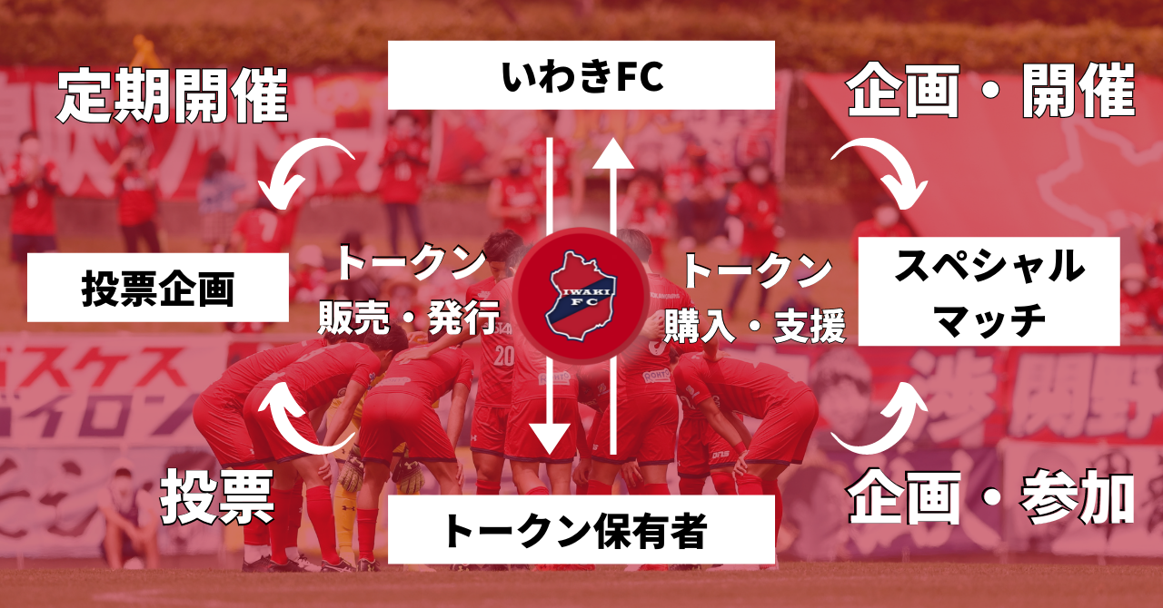 いわきFCでは、これを導入して『サポーターとつくるスペシャルマッチプロジェクト』を始動させ、5月29日(日)ガイナーレ鳥取戦で、いわきFCトークンを使ってスペシャルマッチの名称や、記念グッズのデザイン案を募集するといったイベントを企画し、ファンと共にホームゲームを創り上げる新しい体験を提供いたします。
