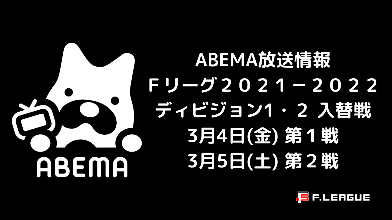 本日4日(金)にFリーグ2021-2022 ディビジョン1・2 入替戦 第1戦、明日5日(土)に第2戦を開催します。この試合は無観客での開催が決定していますが、ABEMAで生中継いたします。ABEMAでご覧になっている皆さまにも楽しんでいただける中継をお届けいたしますので、日本最高峰のフットサルリーグ「Fリーグ」をABEMA/SPORTS LIVE2 チャンネルにてぜひご視聴ください!