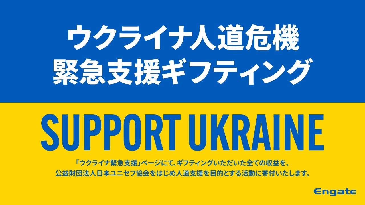 エンゲート株式会社は、ウクライナ人道危機に対する緊急支援を開始することを決定いたしました。「ウクライナ緊急支援」のページで、3/1-4/28(期間延長の可能性あり)に、ギフティングいただいた総額から決済手数料を除く全ての収益を、(公財)日本ユニセフ協会をはじめ人道支援を目的とする活動に寄付いたします。