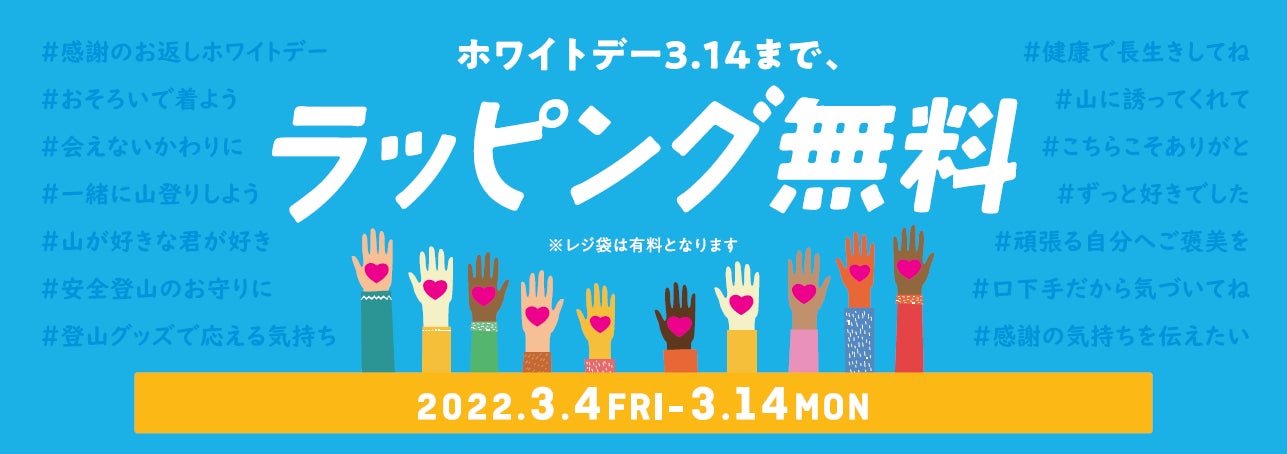 登山・クライミング・アウトドア用品総合専門店、クライミングジムを運営する株式会社好日山荘(本社:兵庫県神戸市、代表取締役社長 池田 真吾)は、3月4日(金)よりホワイトデー ギフトラッピング無料キャンペーンを開催します。