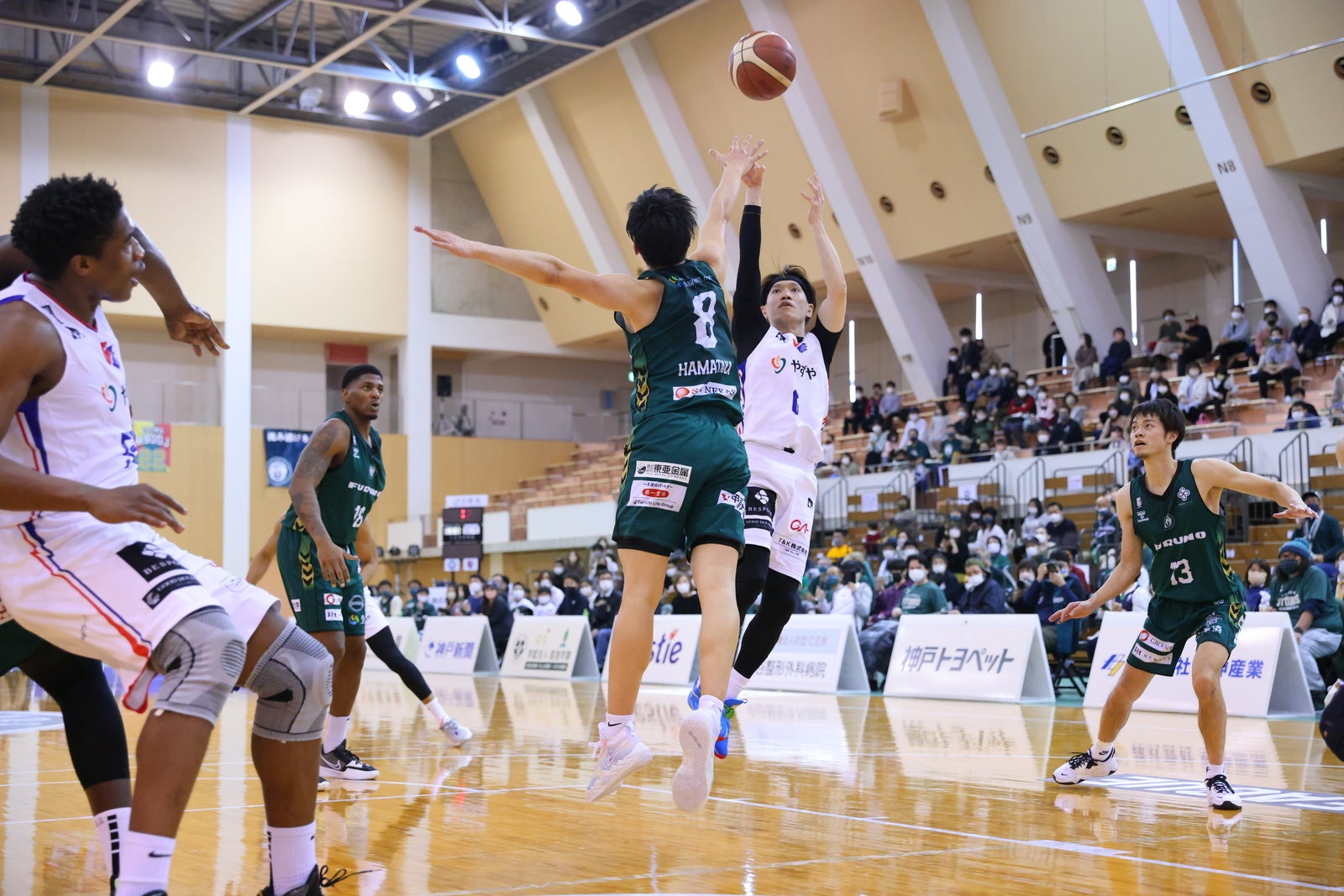 福岡は#0 ジョーダンがフェードアウェイシュートを決めると、#55 ビバリーのダンク、#18 菅のカットインなどで加点するが、両チームともアウトサイドシュートの精細を欠き1Qは12−11のロースコアゲームとなる。