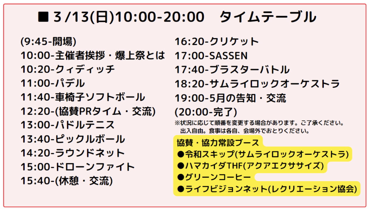 ※本イベントは、5/4(水)5/5(木)に日本薬科大学さいたまキャンパスにて実施する「第2回マイナー競技認知度爆上祭」のプレイベントにもあたります。5月申込済の方は無料でご招待いたします。