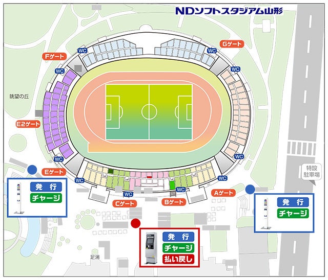 スタジアムにおける、チケット・グッズ・ファンクラブ・飲食売店など、全ての決済が、現金の授受を必要としないキャッシュレス(非現金)決済となります。